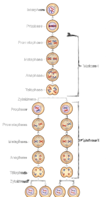 Am Anfang befinden sich 46 Chromaditen in Form von 1-Chromatid-Chromosomen in der Zelle. Bei dieser Phase verdoppelt sich DNA nach 2-Chromatid-Chromosen in der Zelle.