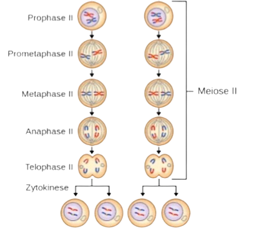 Der Zellkern bildet sich nochmal. Dadurch entstehen zwei Zellen, Jede 46 2-Chromatid-Chromosomen.